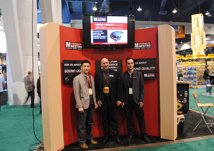 2012年1月在美國CES電子展上與曼斯特公司總裁及技術(shù)總監(jiān)合影
