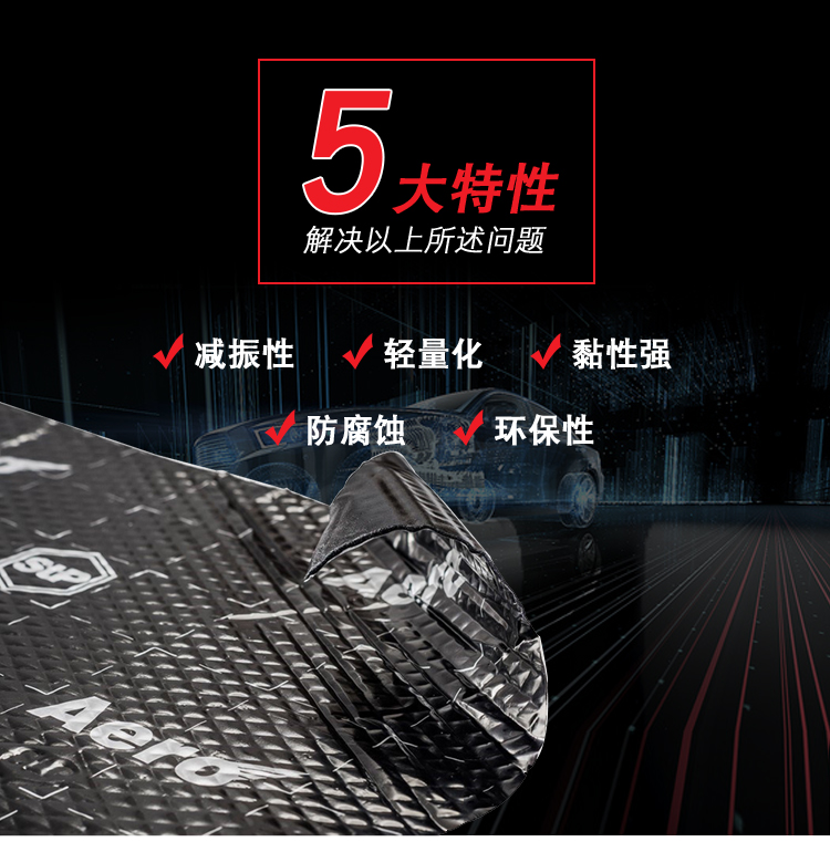 STP航空金衛(wèi)士擁有0.33的阻尼因子,其具有輕量化的特性。研發(fā)這款材料主要用于飛機(jī)隔音,因?yàn)槠洳馁|(zhì)又輕又薄,同時(shí)又能提供良好的止震