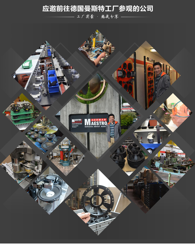 2008 創(chuàng)立Maestro品牌。Maestro的產(chǎn)品在德國歐碧翰Obrigheim制造,技術(shù)上均延續(xù)了MB Quart的傳統(tǒng)和優(yōu)點(diǎn),還突破了很多專利技術(shù)。在原來MB Quart的技術(shù)基礎(chǔ)上成功開發(fā)MegaSphere 和UltraSphere專利技術(shù),使得高音在360度的方位內(nèi)都能獲得更加平衡的聽感。Maestro作為德國品牌的保障是:真實(shí)的現(xiàn)場音樂重現(xiàn);標(biāo)準(zhǔn)設(shè)計(jì)理念;高可靠使用性能。