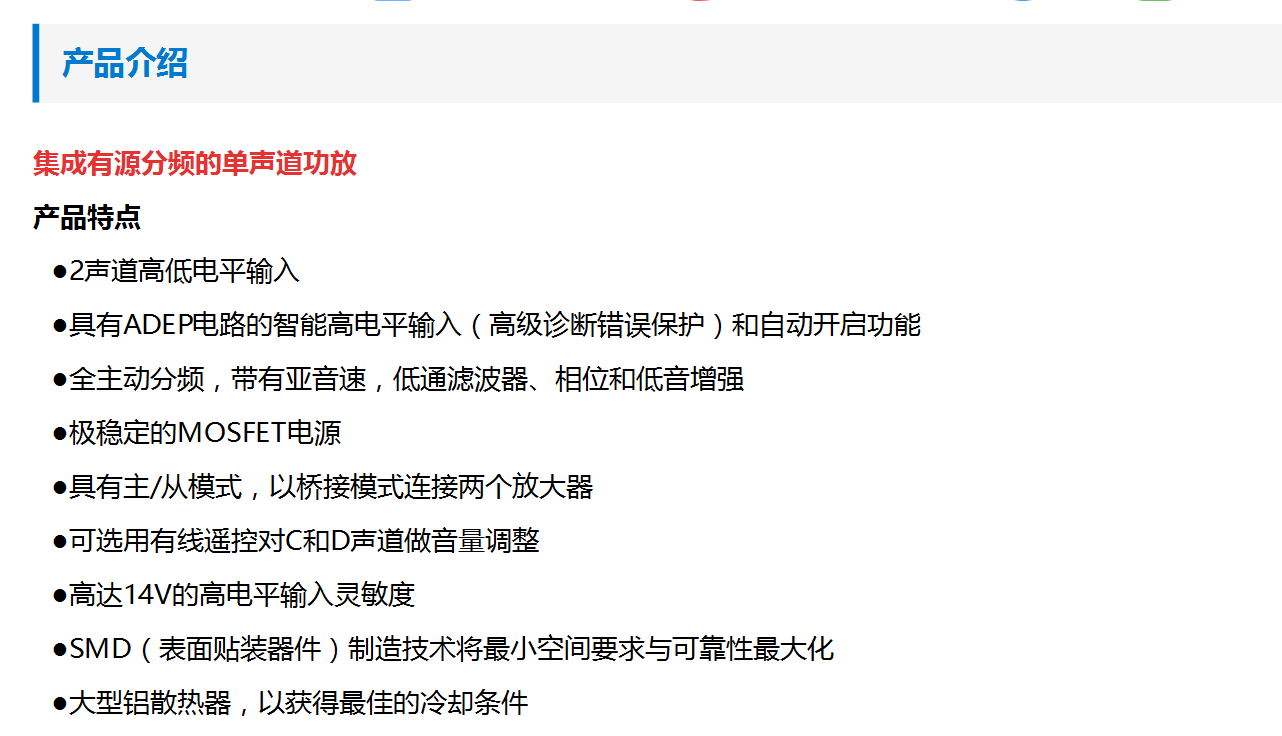 2013年數(shù)字全音域功放 MATCH PP 82DSP進(jìn)入市場。高于90%的效率不僅適合發(fā)燒友,也是混合動(dòng)力和電動(dòng)汽車電音的解決方案。