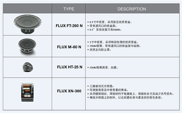 FLUX XN-360三路被動(dòng)式分頻器可調(diào)整高音及中音音量的衰減。采用鍍銀錫絲,焊接材料于電路板上,增強(qiáng)粘合力及減少訊號(hào)損失。精選分頻器