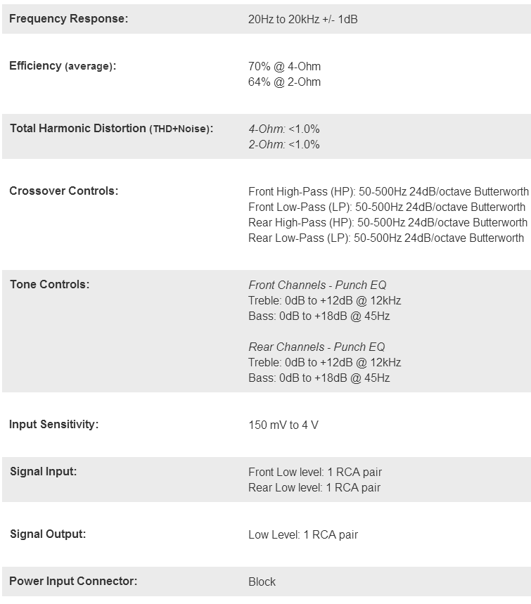 4 INDGO專利技術(shù): 無(wú)論電池的狀況有多糟,電源供應(yīng)會(huì)隨電池之電壓調(diào)整,以確保額定的功率輸出。INDGO線路使PUNCH擴(kuò)大機(jī)能輸出大功率,這就是為何ROCKFORD功率聽(tīng)起來(lái)總是比別的功放強(qiáng)勁的原因。