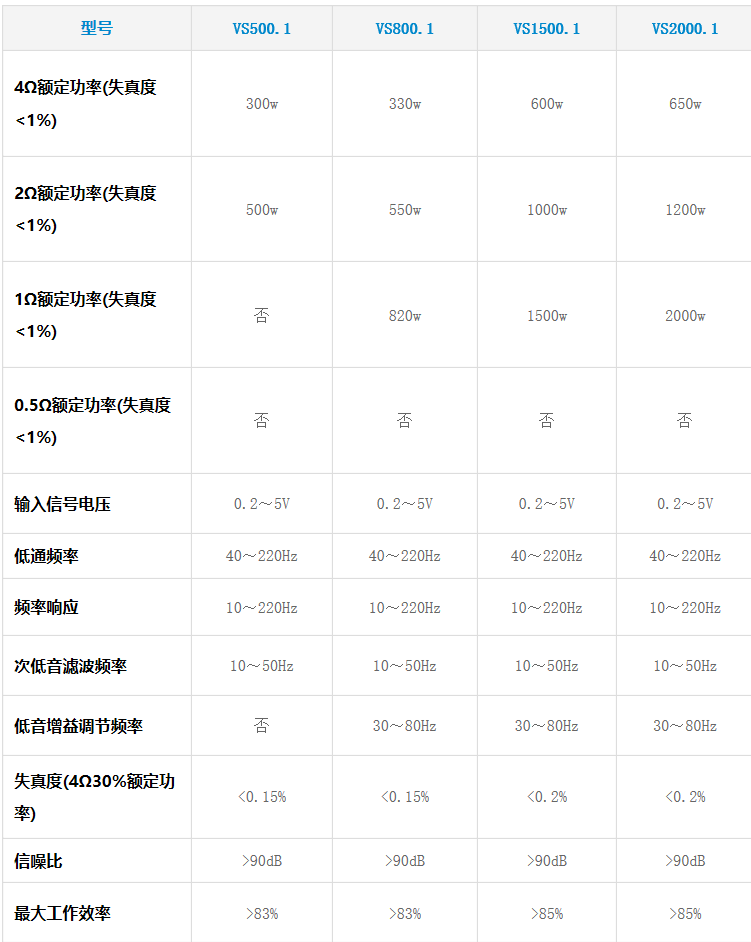 圣美歌 VS1500.1 單路功放 2歐實(shí)際輸出功率1000W,4歐實(shí)際輸出功率600W,足夠推動(dòng)市場(chǎng)上大多數(shù)的雙音圈低音炮,此功放速度快,失真很小。