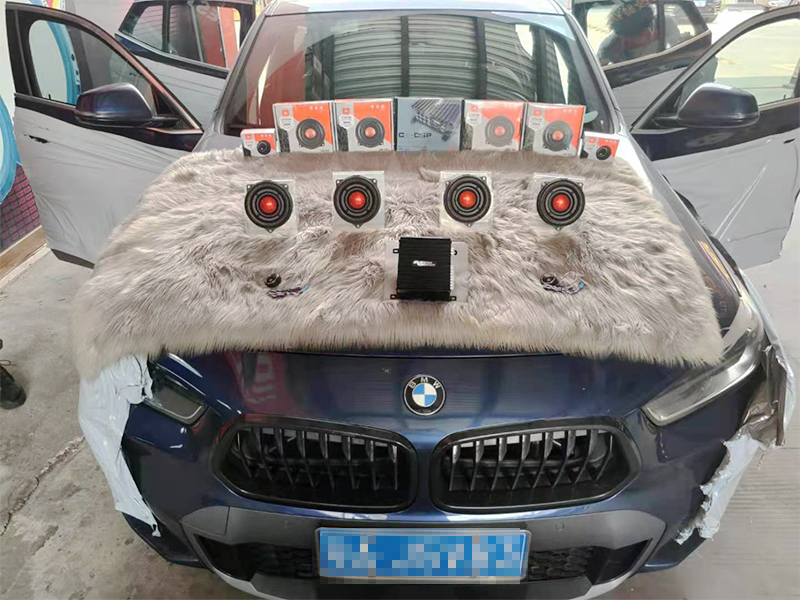 可以看到的是依舊是JBL的喇叭,但今天的稍微有點(diǎn)不同,這套喇叭是寶馬車的專用喇叭,就是原車原裝的,就專門(mén)給寶馬車型定制的這么一套喇叭,加裝了一臺(tái)圣美歌的DSP,還有就是貼四門(mén)隔音,我們接著往下看看。