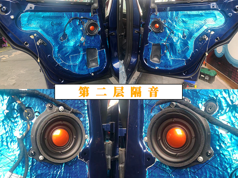 這里可以看到的是第二層隔音完成之后的效果,看上去是不是很舒服的感覺(jué)。隔音和減震效果也是不錯(cuò)的哦!還有就是在喇叭的安裝上,既然是原車定制的喇叭,那就不需要更換喇叭墊,直接將原車?yán)炔鹣轮苯痈鼡Q即可。