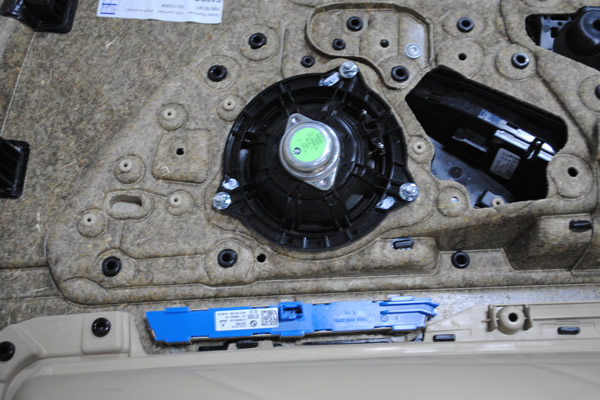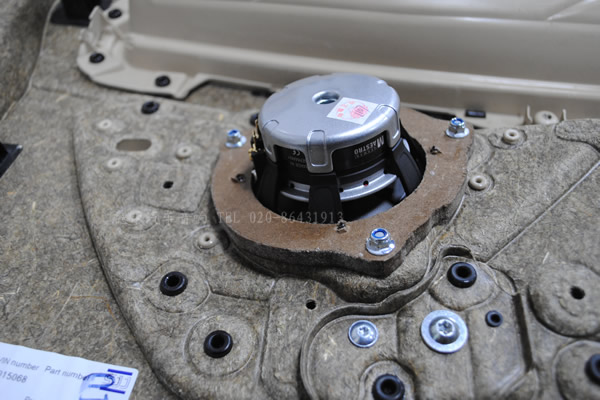曼斯特4寸喇叭裝到門上了,使用專用墊圈安裝得很牢固