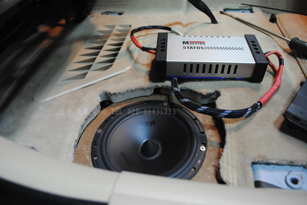 前聲場4寸中音和1寸高音選用曼斯特SV4009兩分頻套裝喇叭,同時選擇了EV6508的6寸低音作為前聲場座椅底下的低音喇叭,EV6508和SV4009對于寶馬原車功放來說,在可以推動的情況下,發(fā)揮不夠充分,因此,加了一臺歐迪臣SR4 功放,后聲場沿用的是EV4008,整個配置,聲場的清晰度,通透性更勝一籌,效果是不言而喻的。下面開始上圖