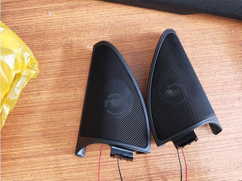 分頻器安裝在車門上,用熱熔膠與隔音將其固定,高音安裝在原來的三角位,大小位置都剛剛好,用熱熔膠與隔音將其固定住