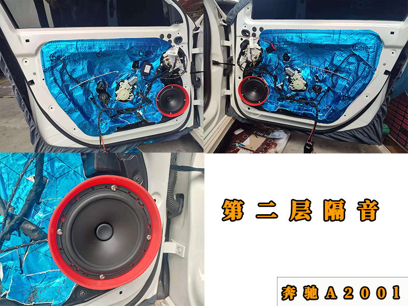 門(mén)板的第二層隔音是密封作用,現(xiàn)在看到的是前門(mén)喇叭的安裝,后門(mén)也是一樣的。喇叭的安裝是用專(zhuān)車(chē)專(zhuān)用的配件直接安裝的,原車(chē)?yán)任粺o(wú)損升級(jí)。