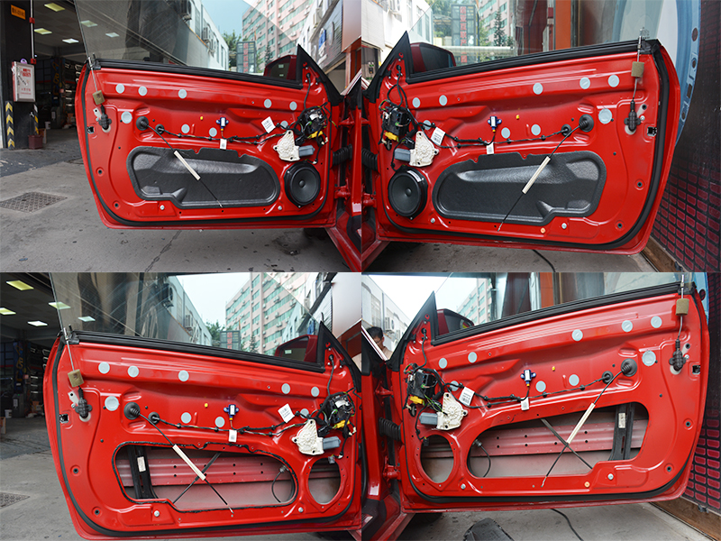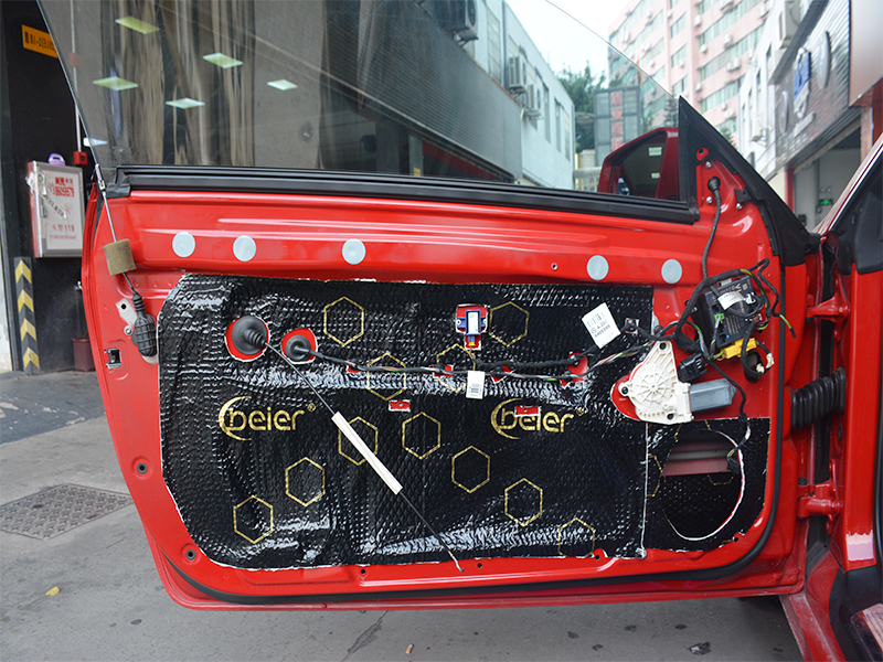 開始施工,安裝貝爾黑金剛加強(qiáng)版隔音對原車的鈑金進(jìn)行加厚