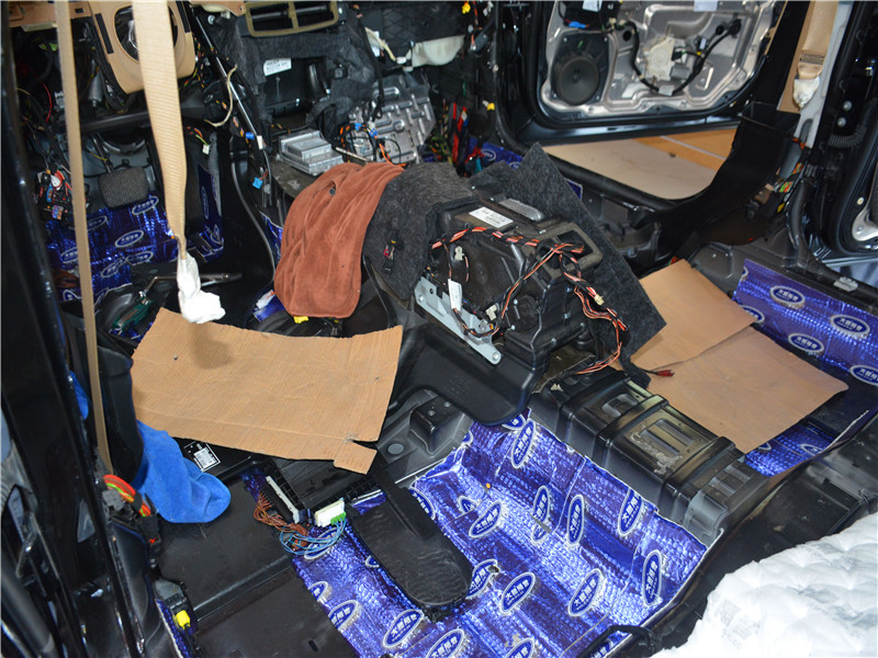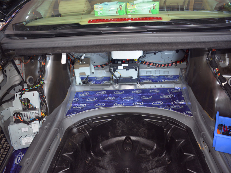 鏟掉原車隔音后,鏟除多少貼多少止振,貼上大能環(huán)保材料。