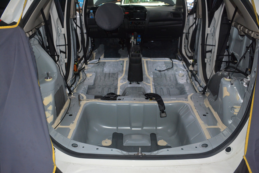 開始隔音之前,先做好車聲保護,并對全車進行檢查驗車,防止在施工過程中的小意外。拆座椅和內(nèi)飾件,原車隔音塊很少的,所以噪音比較大。