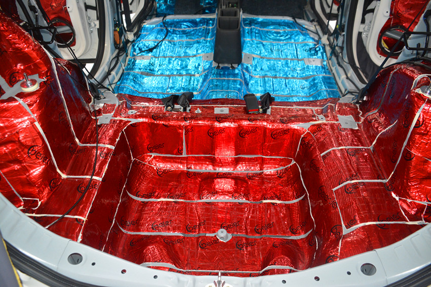 尾廂選擇了貝爾紅膜加強減震材料,厚度是普通的材料的1.3倍