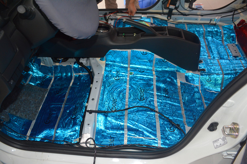 底盤隔音施工,主要的功能是處理在高速行駛時鈑金件振動共鳴,及由輪胎傳入的路面噪音,和排氣聲導入后箱的共鳴音壓。