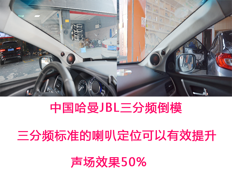因為車主選擇了JBL的三分頻喇叭,把高音和中音倒模在A柱上,喇叭的定位決定了你花錢的價值。定位精確的話,你花1萬塊絕對有1萬以上的音質(zhì)效果