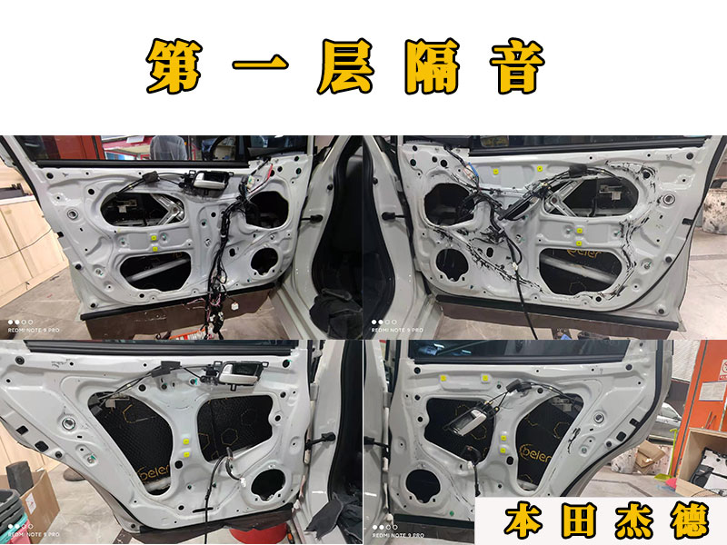 這是門板的第一層隔音,門板隔音一共有三層,兩層的止震板和一層吸音棉一句話總結(jié)下來就是,第一層增加門板厚度減少共振,第二層形成封閉制造音箱,第三層厚棉降噪減少異響。