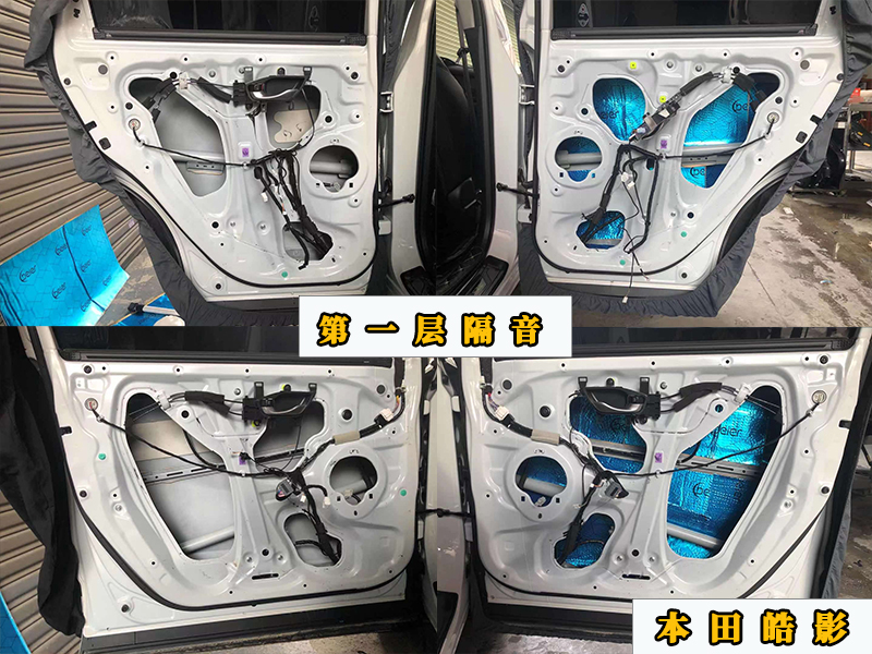 門板隔音是三層的,這里選用的是貝爾的止震板,止震板的好壞第一個(gè)標(biāo)準(zhǔn)是不留膠,所以選對(duì)牌子和專業(yè)的門店很重要,不然留膠了的話,清理起來(lái)就麻煩了。