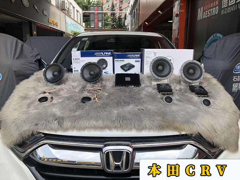 先簡(jiǎn)單看一下配置,前聲場(chǎng)用的事丹拿的232套裝喇叭,后門用的是阿爾派的套裝喇叭,再加裝一臺(tái)阿爾派的R500的處理器。一共事8個(gè)喇叭,隔音用的是貝爾的大能。