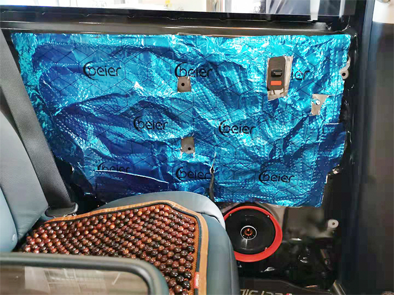 接下來就是隔音使用貝爾藍(lán)膜做門板隔音,加強(qiáng)原車鈑金的密度。大大加強(qiáng)喇叭的音樂效果的同時(shí)對(duì)風(fēng)噪無限的消除