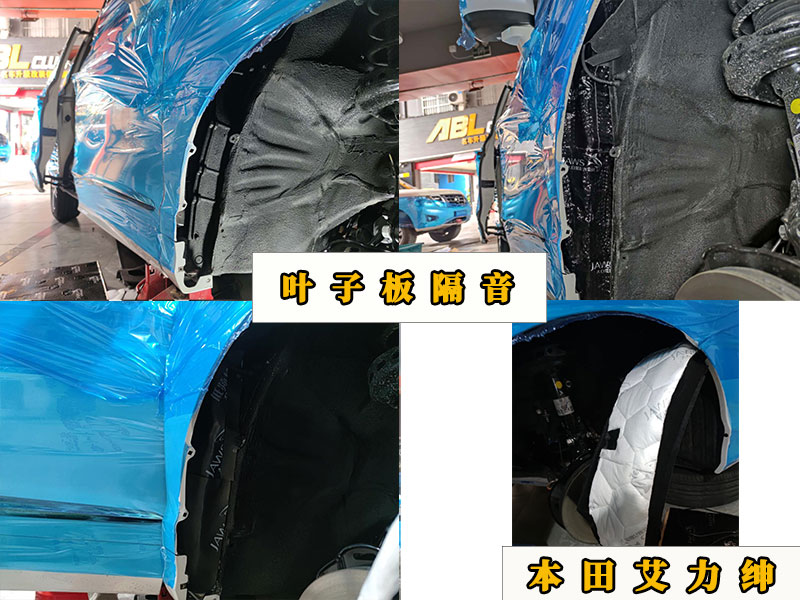 葉子板隔音!葉子板隔音也是三層,主要是解決路噪和胎噪,原因是葉子板和門板的厚度一樣是很薄的,容易產(chǎn)生共振。然后輪胎也是整車動(dòng)靜比較大的位置。
