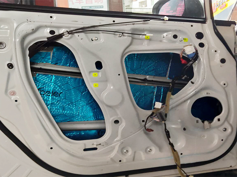 第三層使用貝爾吸音棉對原車門的異響進(jìn)行處理吸音