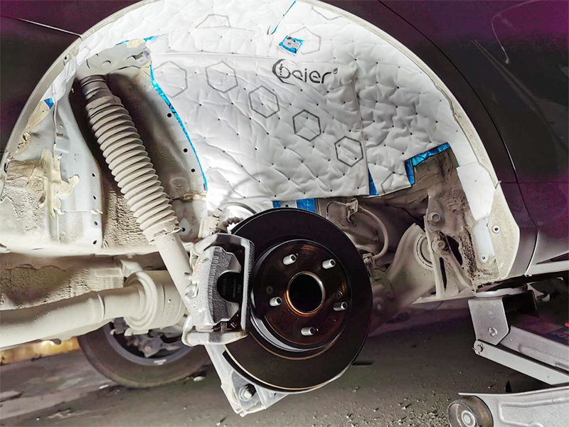 車輛行駛過程中非常的容易產(chǎn)生胎噪影響整體的效果,所以車主對輪胎的胎噪非常注重,所以決定升級四輪的葉子板貝爾隔音。