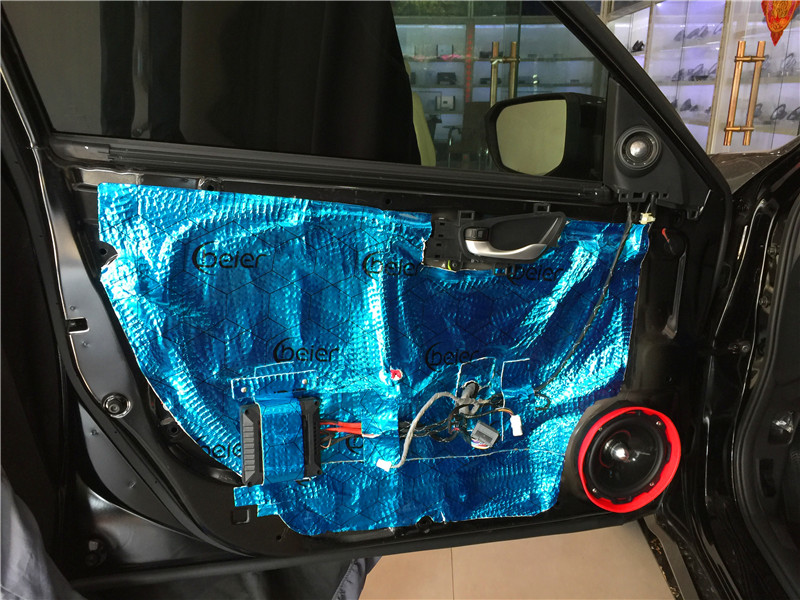 在安裝喇叭前,改裝師對(duì)四門做了專業(yè)的隔音。門板的隔音工程是重中之重,其作用一方面可以提高門板的剛性和密閉性,減少門板鐵皮共振產(chǎn)生噪音,同時(shí)也大幅度降低風(fēng)噪入侵的程度,達(dá)到隔音的效果;另一方面,門板隔音可以讓門板的空間形成類似變成不規(guī)則的“密閉箱”,喇叭在箱體工作的效果自然要好一些,提升汽車音響效果。