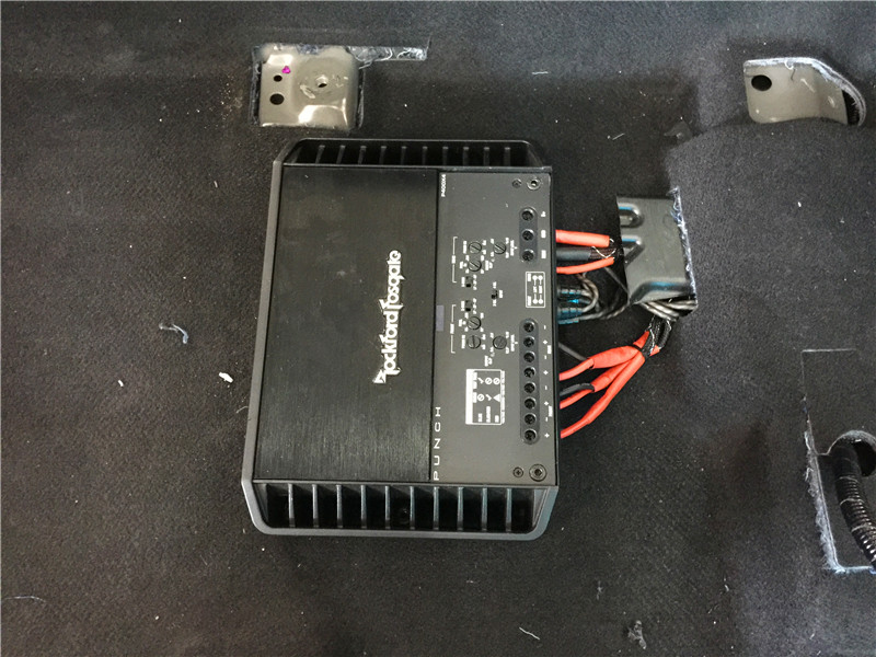功放安裝,這是以前車主在其他店改裝過(guò)的,一看就是不專業(yè)的做法,所以說(shuō)選擇專業(yè)店安裝很重要。