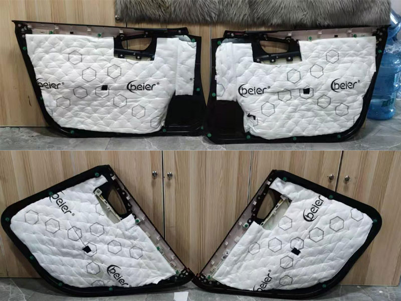 第三層隔音是吸音棉,即使后門沒有喇叭的我們這邊也做了相對(duì)應(yīng)的門板隔音,因?yàn)檐噧?nèi)環(huán)境是一個(gè)整體,前門作了隔音后門不做的話,總感覺少了點(diǎn)什么。吸音棉是相對(duì)比較厚實(shí)的,能減少很大一部分的噪音,不管是對(duì)內(nèi)還是對(duì)外都是有不錯(cuò)的效果的。