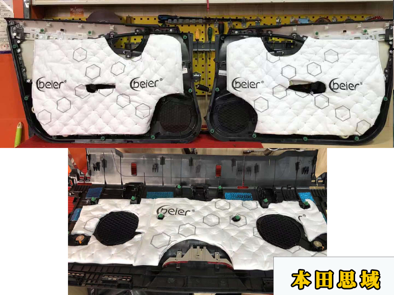 第一層隔音和后排的隔音,門板隔音是三層的,這是第一層,貼在內(nèi)壁,可以減少異響和風(fēng)噪。車內(nèi)環(huán)境會安靜很多的。