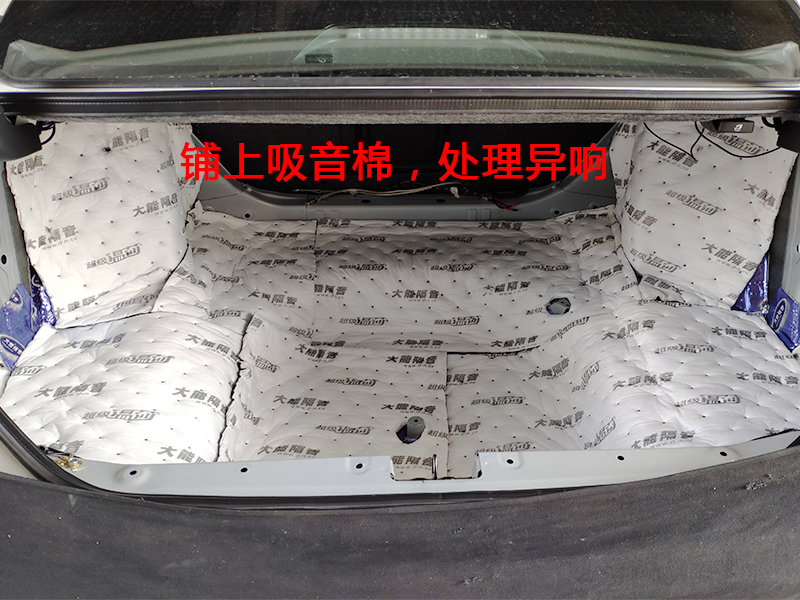 底盤和尾箱是最容易傳播低頻噪的導(dǎo)體之處,因?yàn)槊娣e大更加容易聽到車輪行駛過程中車輪與地面摩擦所發(fā)出來的聲音(低頻噪音),先要處理這些低頻的第一步必須加厚原車鈑金降低共振點(diǎn),第二層進(jìn)行吸音棉處理(千萬記住加厚的地方加厚,不需要加厚地方不要貼哦。否則會(huì)打破原車的聲音平衡點(diǎn),失去該有的效果)