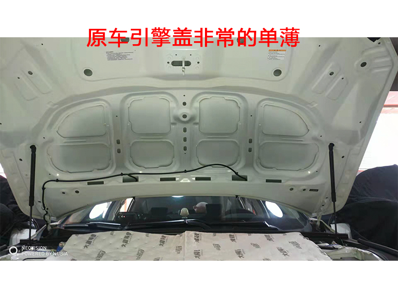 引擎隔音方案分兩步:第一步就加厚引擎蓋的鈑金厚度降低因?yàn)榘l(fā)動(dòng)機(jī)運(yùn)作所產(chǎn)生噪音傳播到車內(nèi)形成異響。第二步就是隔熱膜,既可以吸音也可以防止發(fā)動(dòng)機(jī)運(yùn)作所產(chǎn)生的熱量傳播到鈑金減少鈑金的使用壽命。所以引擎蓋隔音+隔熱,有限減低發(fā)動(dòng)機(jī)運(yùn)作所帶來的噪音和熱量的傳播和安全隱患