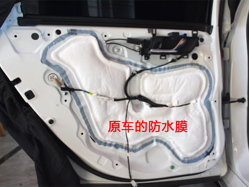拆開門板,原車前后門板只有單薄的塑料防水層,起不到隔音的作用,而且容易產(chǎn)生異響