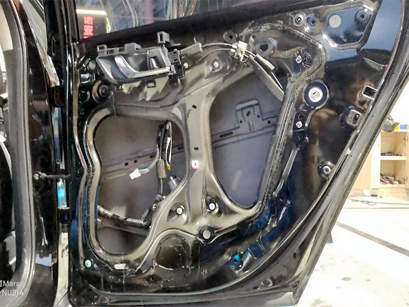 原車的門板沒有任何的隔音止震,所以車輛音響開到月底和速度越快異響就會越大