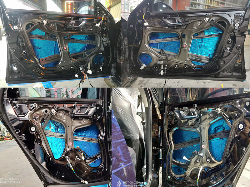 對四門的門板進行加強處理抑制低頻異響的共振