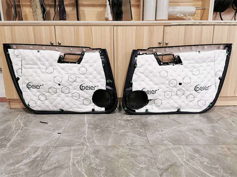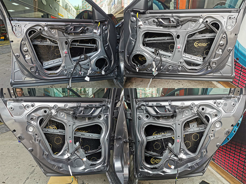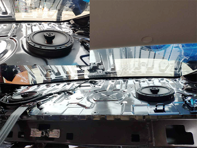 好的音響需要好的環(huán)境好的箱體,原車門板的鈑金太單薄非常容易產(chǎn)生共振,影響喇叭的音質(zhì)效果同時產(chǎn)生異響。所以必須使用貝爾黑金剛加厚音箱箱體