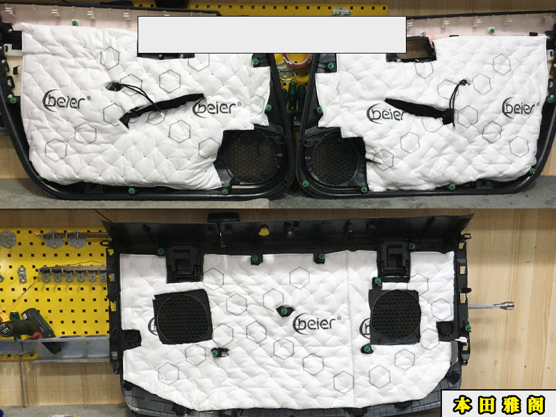 升級完成的最后,這邊只需要吧第三層隔音貼上門板就好了,也就是吸音棉。主要就是降噪作用多一點(diǎn),綜合來說,每一個升級步驟都是為了整車的隔音和音質(zhì)所服務(wù)!缺一不可。