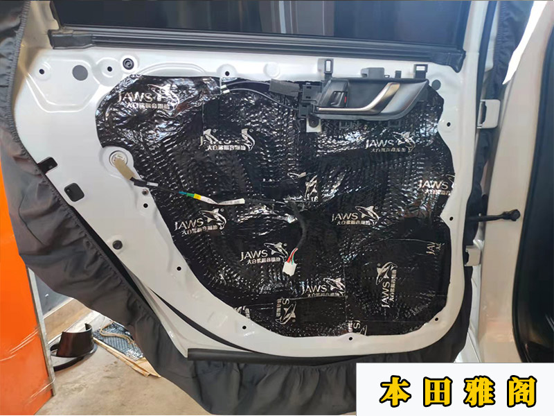 門板隔音分別做了前后門和后排,雖然后門沒有喇叭,但還是需要做一下隔音。這樣整車的環(huán)境也會(huì)相對(duì)好點(diǎn)。做了隔音,對(duì)喇叭的效果也是有提升的。