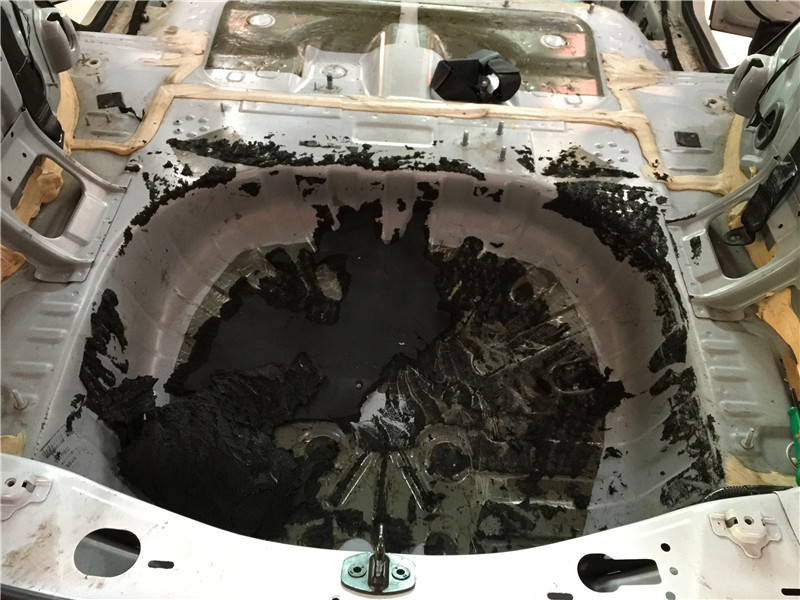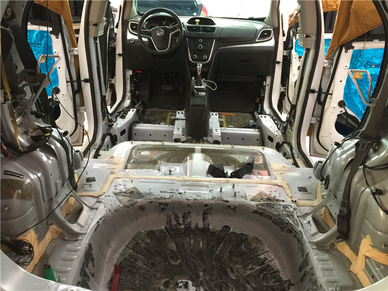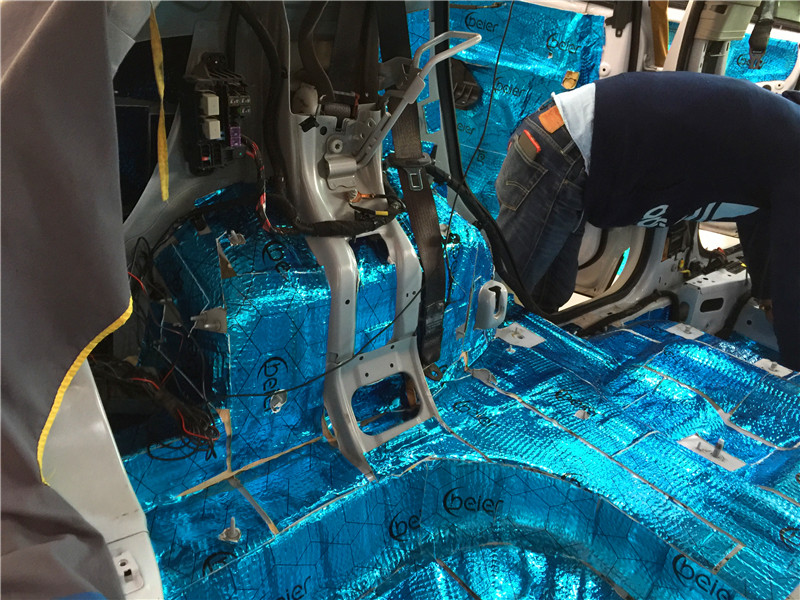 拆掉座椅和地毯,清理干凈開始貼底盤隔音。
