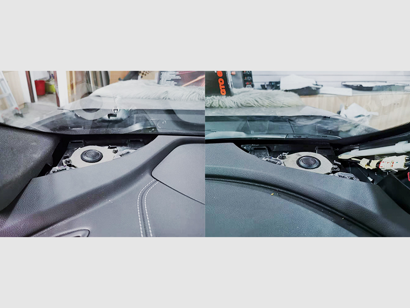 為了提高音質(zhì),我們在原車加了隔音棉。一是增加車門的厚度來減少共振。增加回響