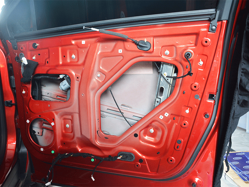 四門隔音通常采用三層的隔音方案:第一層加厚原車鈑金,減少共振點
