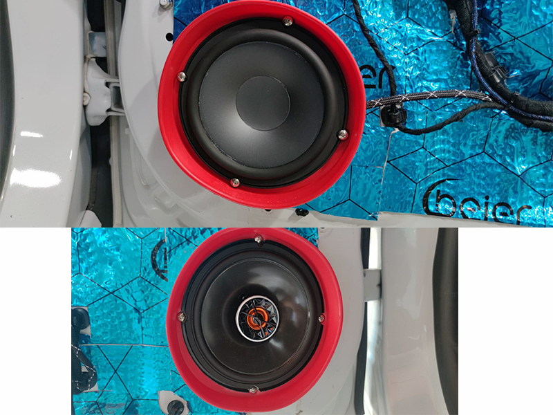 比亞迪秦 很多車主反映噪音異響大,而音響太次了。經(jīng)過詳細(xì)的剖腹分解后原車的配件太令車主失望了,單薄的鐵皮非常容易產(chǎn)生共振異響同時(shí)喇叭開大聲點(diǎn)就是有刺痛耳朵的噪音,經(jīng)過車的多方的對比后決定升級全套JBL音響喇叭系統(tǒng)