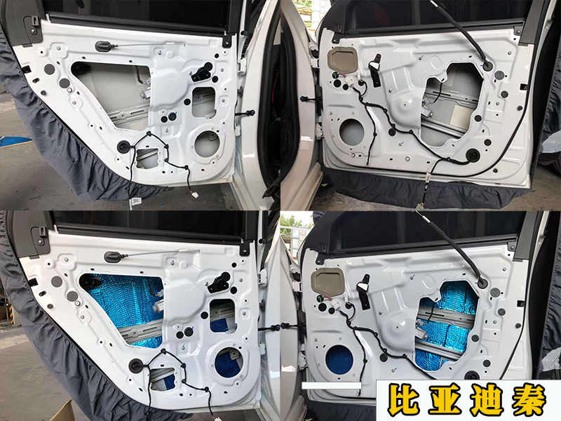 你知道門(mén)板噪音大的罪魁禍?zhǔn)资钦l(shuí)嗎?就是鋁板太薄了,容易產(chǎn)生共振而且風(fēng)噪也特別大。喇叭的音質(zhì)也會(huì)不好,所以升級(jí)音響先升級(jí)門(mén)板隔音。門(mén)板隔音是三層的,這是第一層,增加門(mén)板厚度減少共震。也能提升一定的音質(zhì)效果