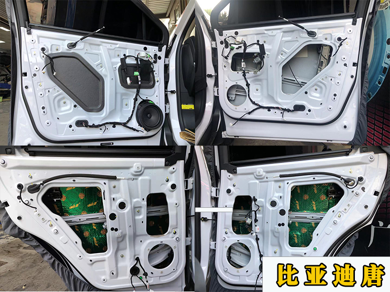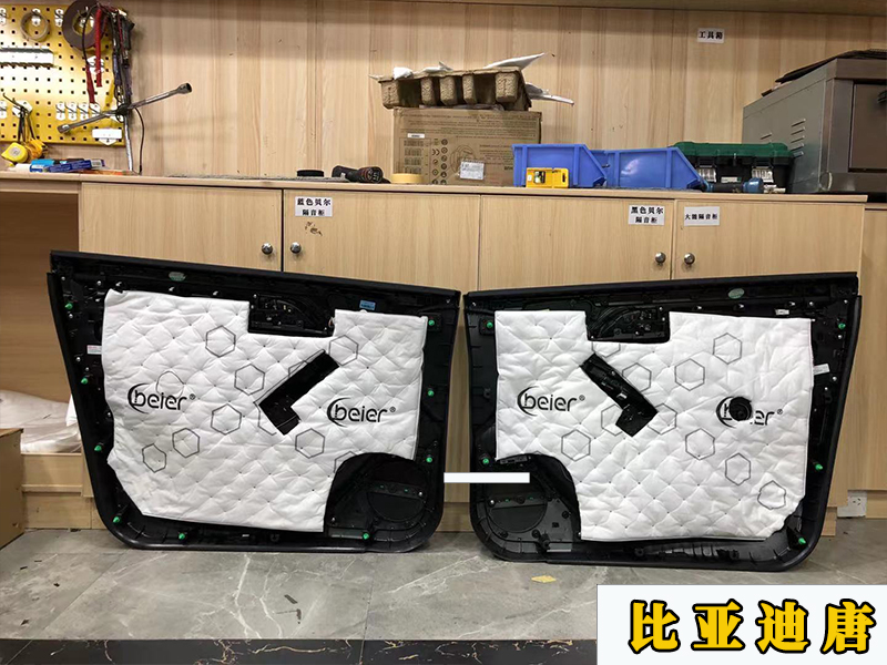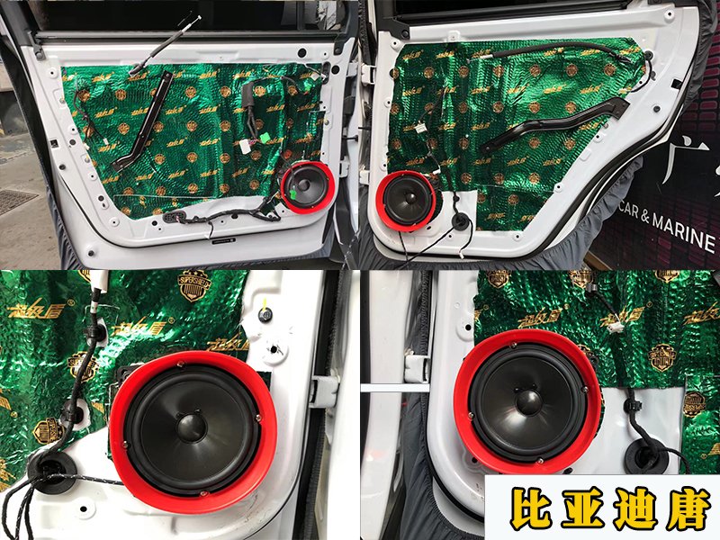門板的第二層隔音是密封整個(gè)車門的,做好之后就可以安裝喇叭了,更換一個(gè)比亞迪專用的喇叭墊就可以實(shí)現(xiàn)無損安裝了。不用打孔更不用開洞外面還有一層可以保護(hù)喇叭的防水罩