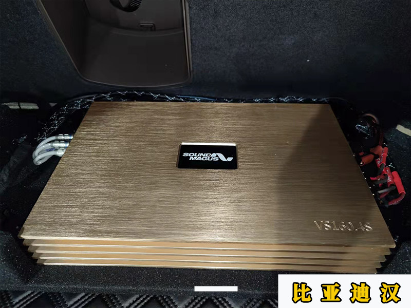 圣美歌的功放和阿爾派的處理器是安裝在后尾箱的,做了一個(gè)簡(jiǎn)易的放置箱體。這樣既不影響美觀也不占用地方。這臺(tái)比亞迪漢的主要工序就是這么多了,不知道你覺(jué)得怎么樣呢?