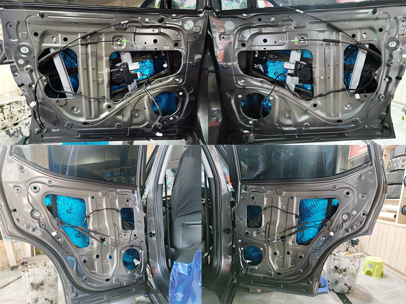 把原車第一層單薄的鐵皮加厚,減少共振點(diǎn),提升音響效果