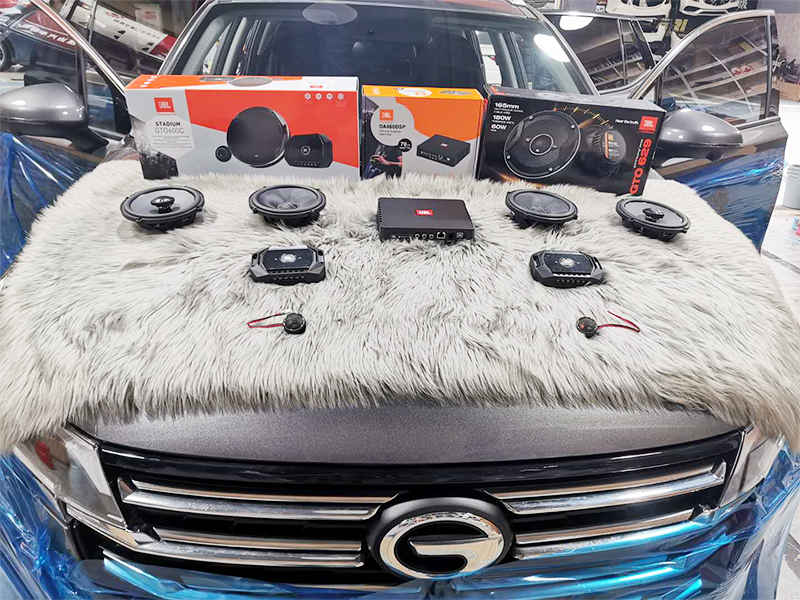 傳祺GS4音響改裝該如何選擇,需要做什么項(xiàng)目呢?四門6個喇叭無損升級為JBLGTO6個套裝+處理器+四門三貝爾藍(lán)膜三層隔音