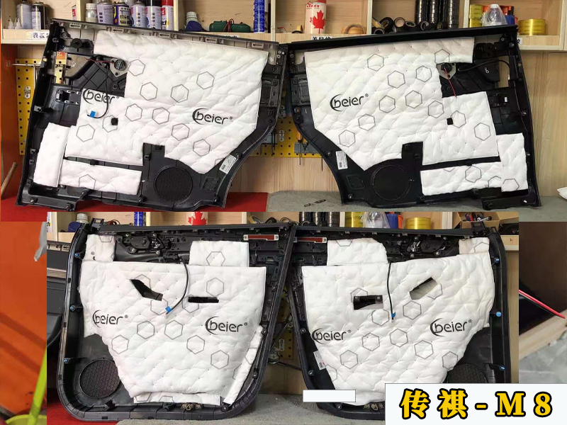 沒做隔音和做了第一層隔音的對比,隔音能給車內(nèi)提供一個(gè)相對安靜的環(huán)境,從而提升音質(zhì),第一層隔音可以增加門板厚度,減少共震和降低風(fēng)噪的影響。