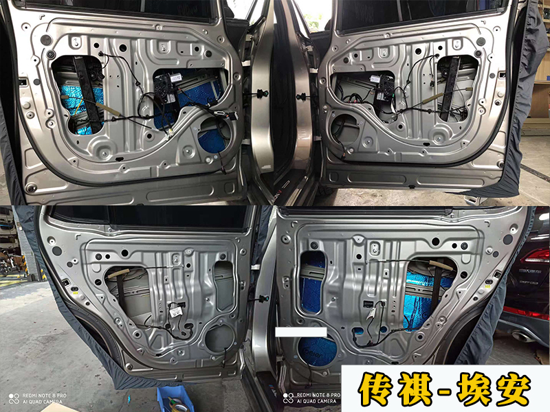 升級音響前一般都會做四門隔音,畢竟原車的鋁板真的太薄了,各種共震異響和風(fēng)噪。做了隔音之后這些問題能得到明顯解決,還可以提升喇叭的音質(zhì)效果,現(xiàn)在看到的是第一層隔音。