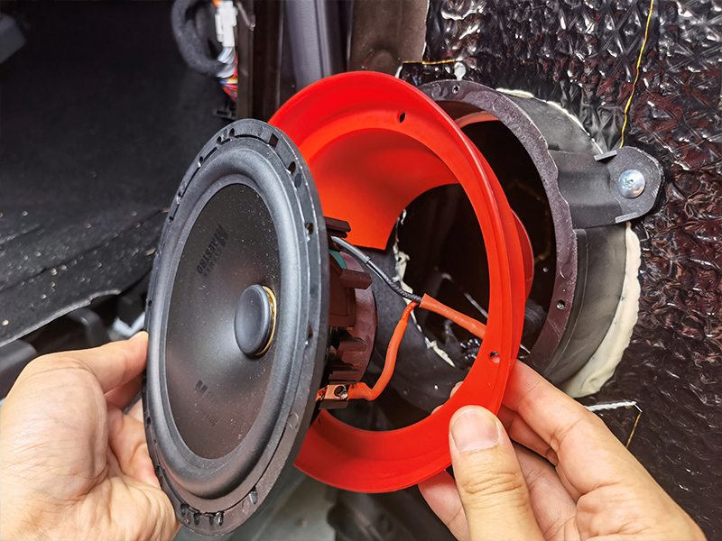 中門是測(cè)滑門,需要非常熟練的師傅拆裝,要不然容易損壞配件,當(dāng)然換喇叭之前還是要先做隔音,這是必不可少的,